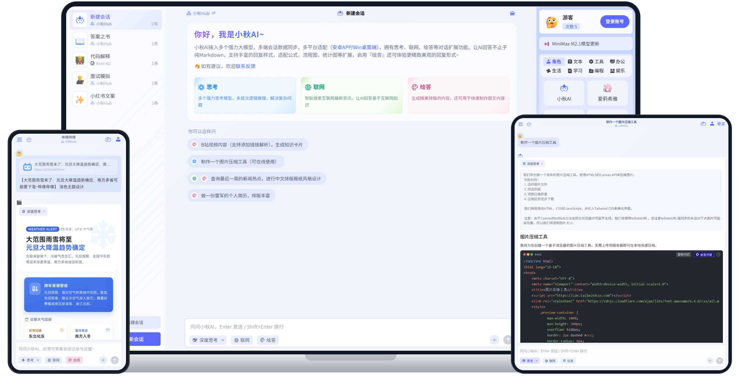 欢迎来到小秋AI,我是您的智能助手,可以为您提供全方位的ChatGPT服务。无论您是工作还是学习,我都会随时随地为您提供帮助,让您的生活更高效便捷,开启AI生活。